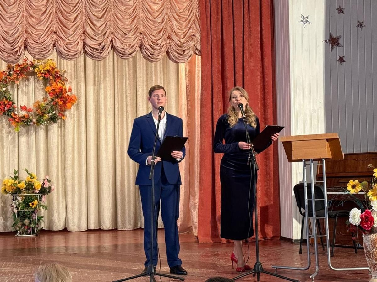 Очаровательные ведущие мероприятия Ирина Олеговна Евтушенко, социальный педагог, и Данил Ткаченко, студент группы 2-ТОА-23, под чарующие звуки живой музыки в исполнении Николая Зауэра, студента группы 1-ТОА-24, приглашали на сцену для награждения грамотами и благодарностями педагогов и сотрудников нашего колледжа, которые более 20 лет работают в системе СПО, имеют высокие достижения и успехи в работе, взрастили и воспитали несколько поколений профессионалов! Цветы и благодарности педагогам и сотрудникам вручали Сергей Иванович Мищенко и Оксана Петровна Половец, председатель первичной профсоюзной организации ГБПОУ ДонТТК профессионального союза работников образования и науки ДНР.