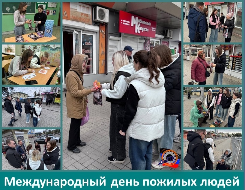 Активисты студенческого Парламента колледжа под руководством советника по воспитанию Светланы Викторовны Шевчик провели акцию «День добра и уважения», ко Дню пожилых людей. Студенты колледжа рассказали о празднике, вручили открытки и подарили минутки счастья бабушкам, угостив их сладенькими вкусняшками.